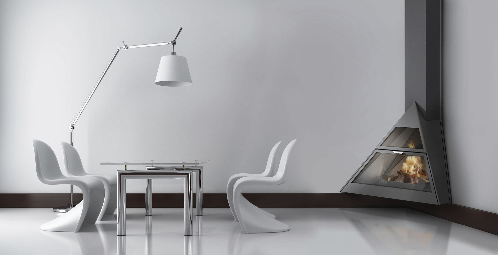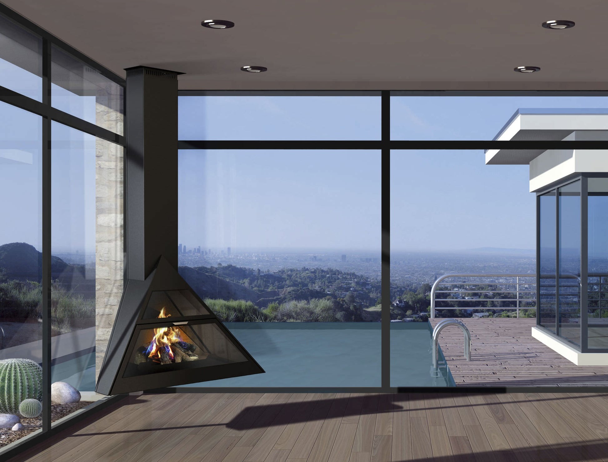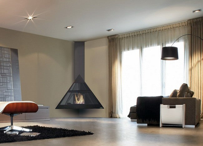 Chimenea de bioetanol con superpanorámica adaptada para rincón.