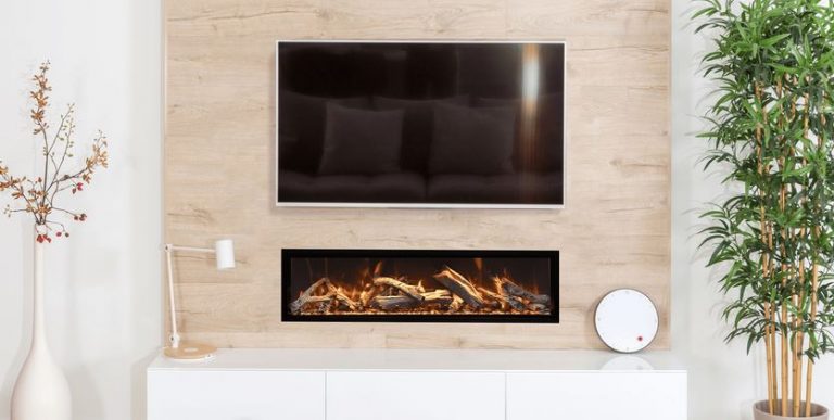 La chimenea eléctrica Amantii SYM XT BESPOKE es una solución de lujo para el diseño moderno, destacando por su diseño extragrande y limpio, sin rejillas visibles.
