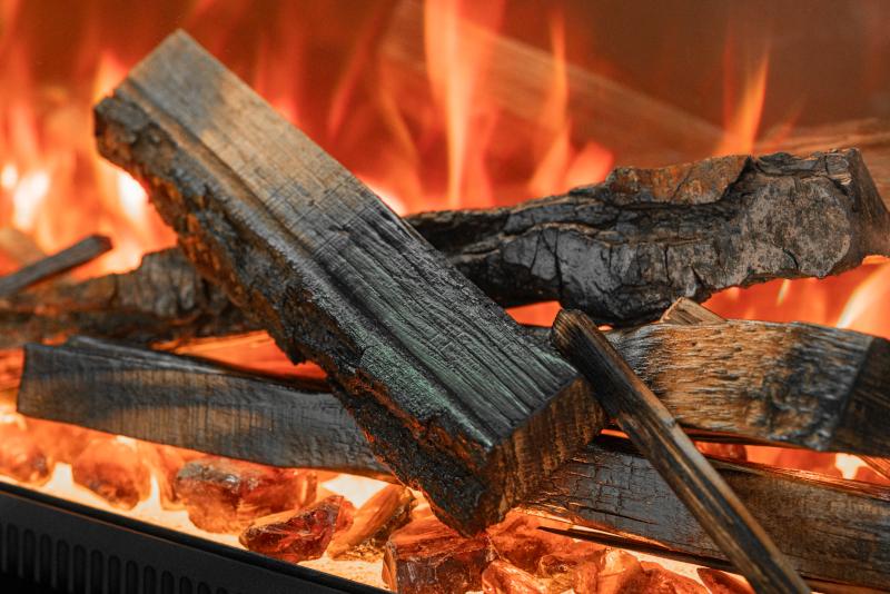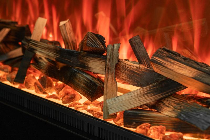 - Efecto de Llama Hiperrealista: Tecnología avanzada que genera llamas dinámicas y un lecho de combustible con brasas que simulan el aspecto de un fuego de leña auténtico.