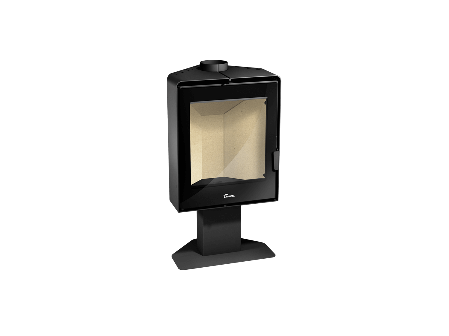 El hogar de la estufa está revestido con vermiculita, material que ayuda a mantener altas temperaturas para una combustión más limpia y eficiente. Incorpora una parrilla de fundición y cuenta con un sistema de doble combustión, maximizando el aprovechamiento de la leña.