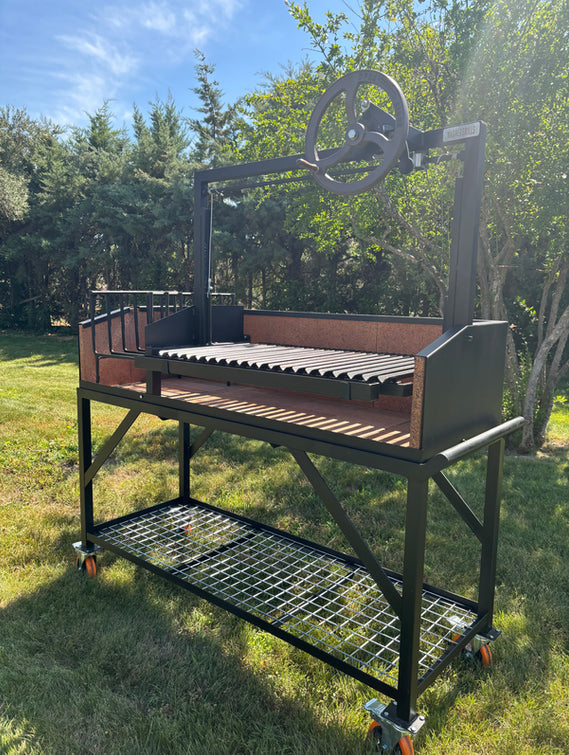 La amplia parrilla angular de acero, con sistema de elevación, brasero integrado, ladrillos refractarios y pintura anti calórica forman un conjunto que garantiza temperatura, aislamiento y resistencia excepcionales.