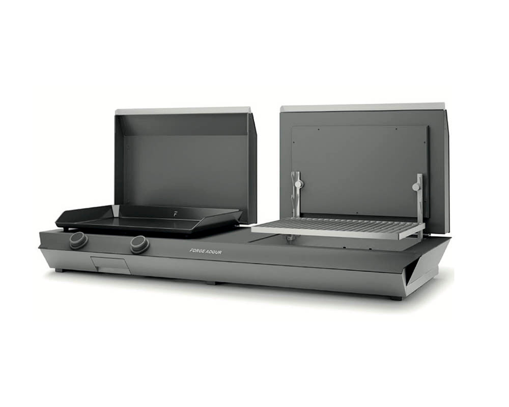 - Combinación 2 en 1: plancha de gas + parrilla de carbón