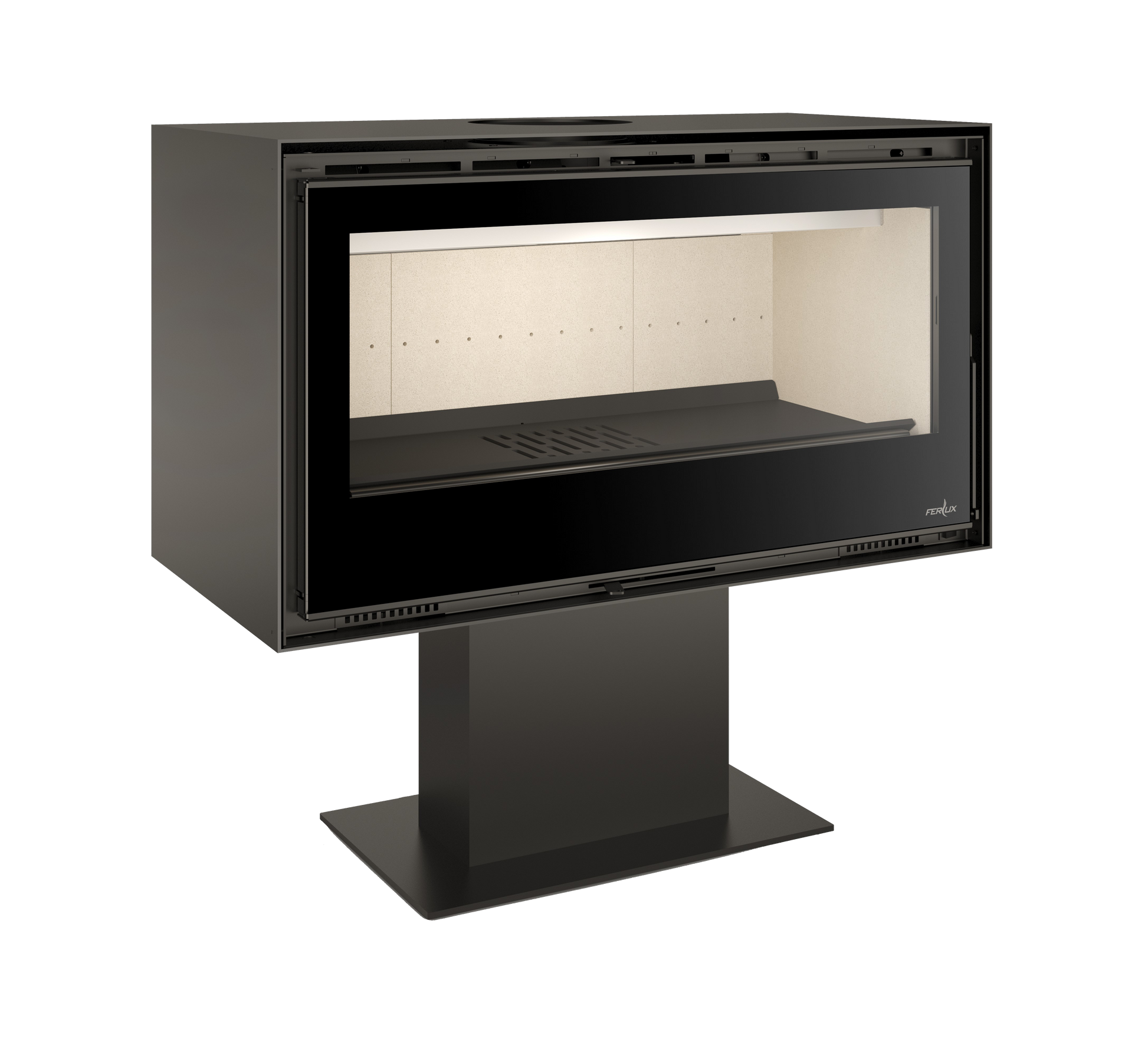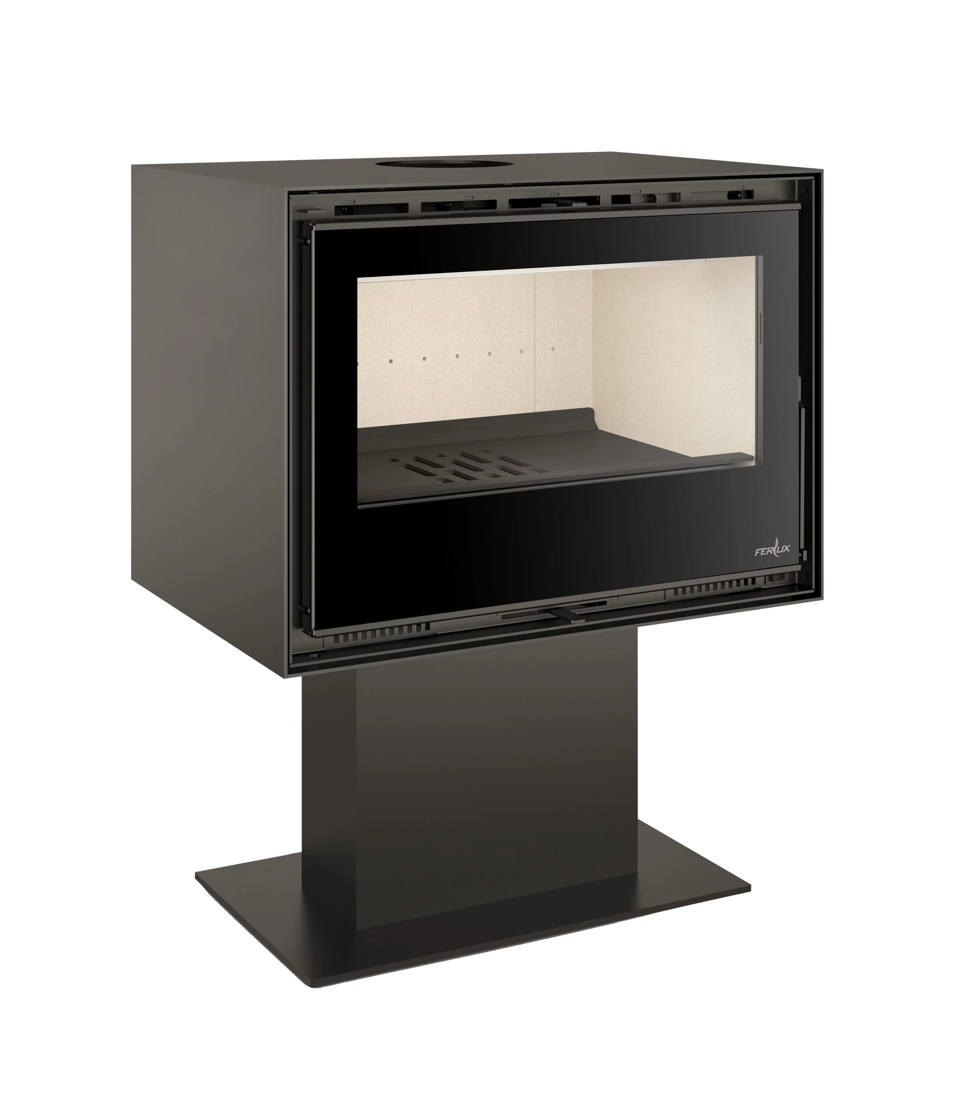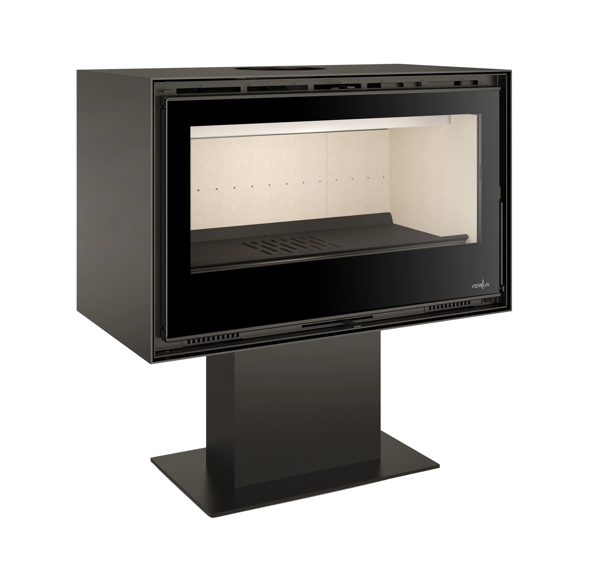 El ENYA Pie Central es un insertable de acero con revestimiento diseñado para una instalación de diseño independiente gracias a su elegante pedestal integrado. Este modelo destaca por su estética moderna y su eficiencia como hogar cerrado.