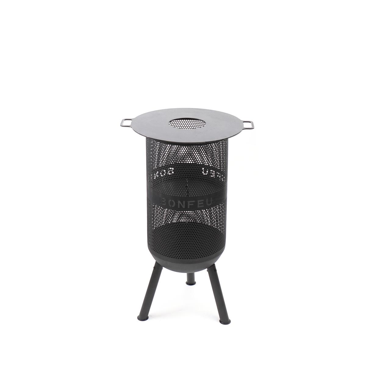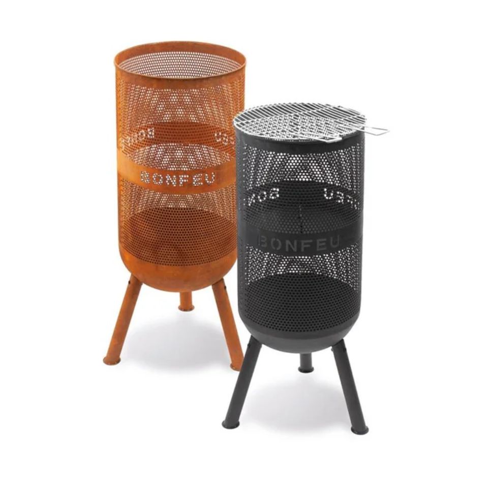 Este tipo de brasero, con tambor perforado, se caracteriza por su alto rendimiento calorífico. Además, los pequeños agujeros en el acero crean un gran efecto atmosférico durante la cocción. Así, puedes encender el fuego en el fondo del brasero, pero si quieres que el fuego esté un poco más arriba (por ejemplo, para cocinar), simplemente puedes colgar la plataforma incluida con un asa a la altura que desees.