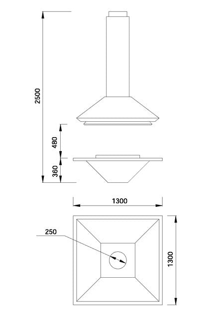 Chimenea central clásica con cerramiento y campana doble.