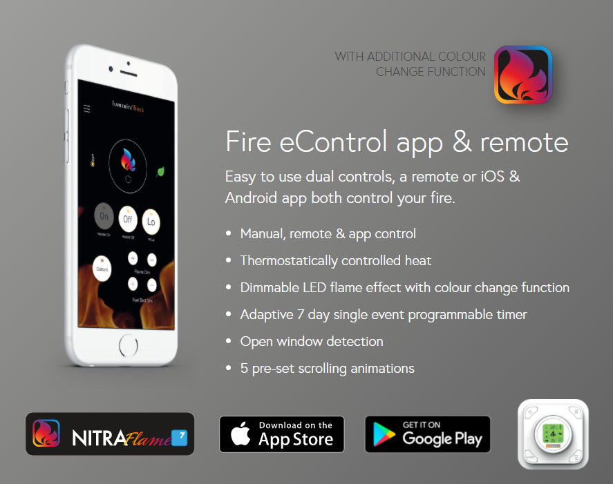 - Tecnología de Llama Realista: Incorpora la tecnología de llama de Flamerite, ofreciendo efectos visuales profundos y ajustables (colores, intensidad y velocidad).