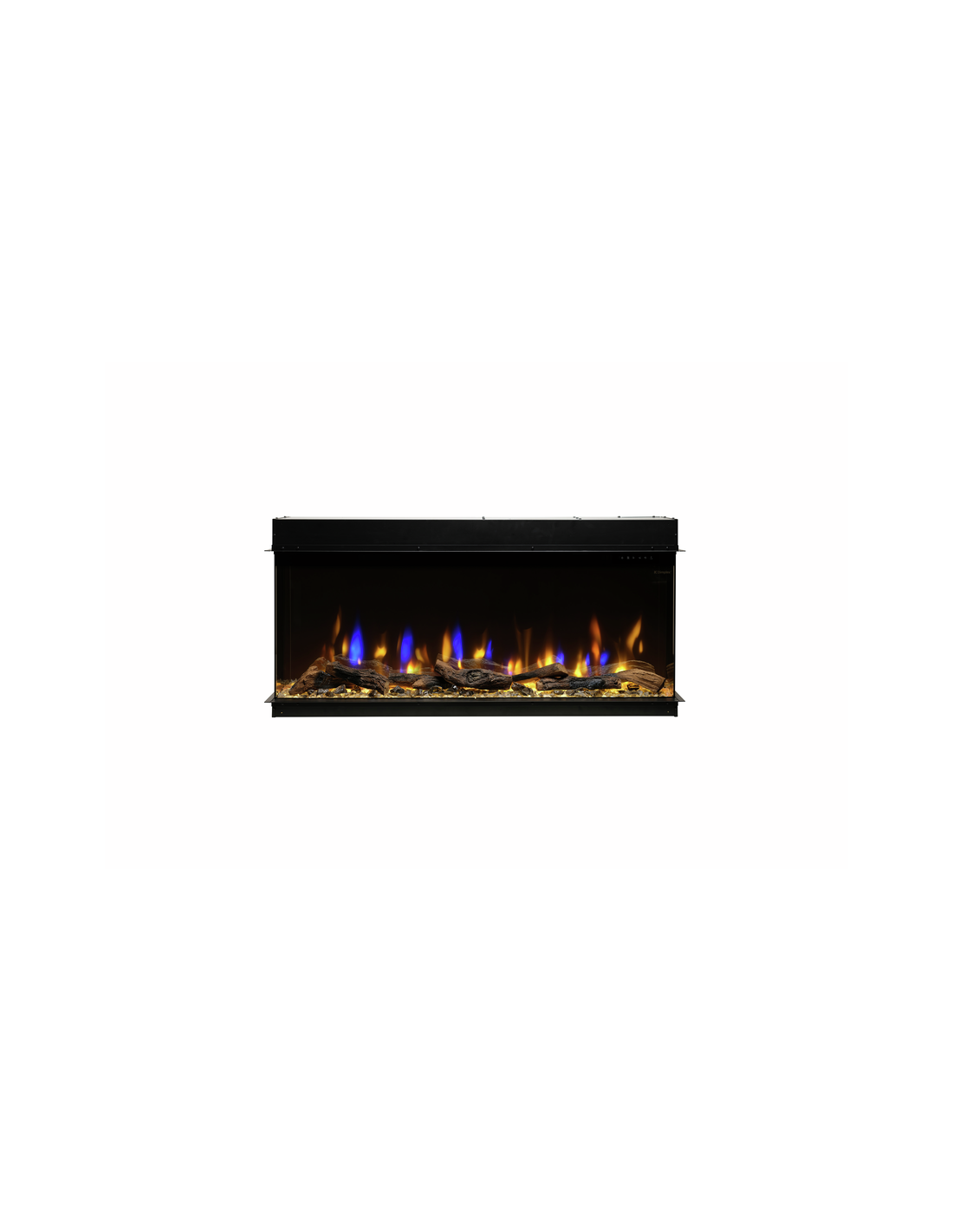 - Control Inteligente: Controla cada función del fuego (color, brillo, velocidad de la llama y la base luminosa) de forma inalámbrica a través de la App Dimplex Flame Connect o con el mando a distancia Bluetooth.