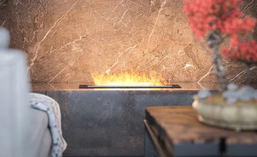 Modelo de estufa de bioetanol de 60cm en acero inox. Ofrece una linea de fuego de 50 cm. Fácil instalación.