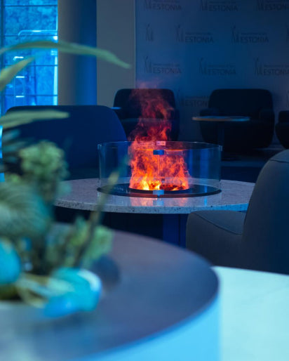 La tecnología que utiliza es un sistema avanzado que crea un efecto de llama muy realista utilizando vapor de agua. Ofrece una alternativa segura, energéticamente eficiente y ecológica a las chimeneas tradicionales, proporcionando el ambiente del fuego sin combustión real.