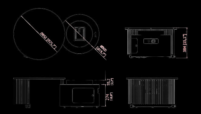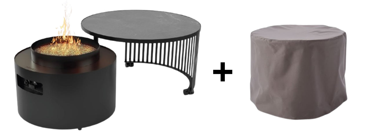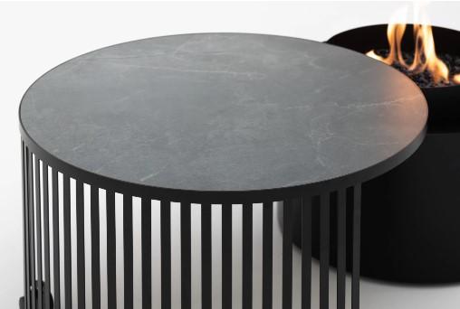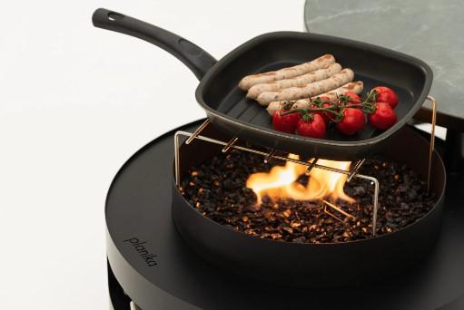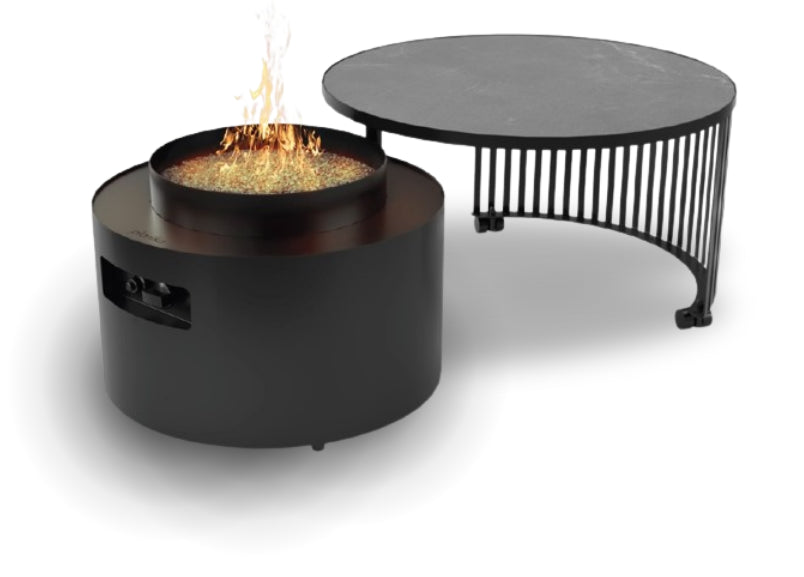 Mesa de fuego en gas con extensión móvil en cerámica de fácil encendido del fuego con solo pulsar un botón y control para ajustar la altura de la llama. Puedes transformar tu Moon en una estación de cocina con nuestra rejilla opcional, perfecta para asar tus platos favoritos justo sobre una llama abierta.