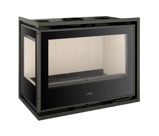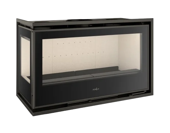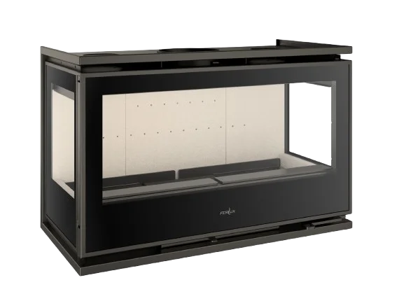 La Serie PANORAMIC de Ferlux se compone de insertables de acero diseñados para ofrecer una visión espectacular del fuego. Su característica principal es la configuración de 2 o 3 lados de cristal serigrafiado, creando un efecto visual envolvente.