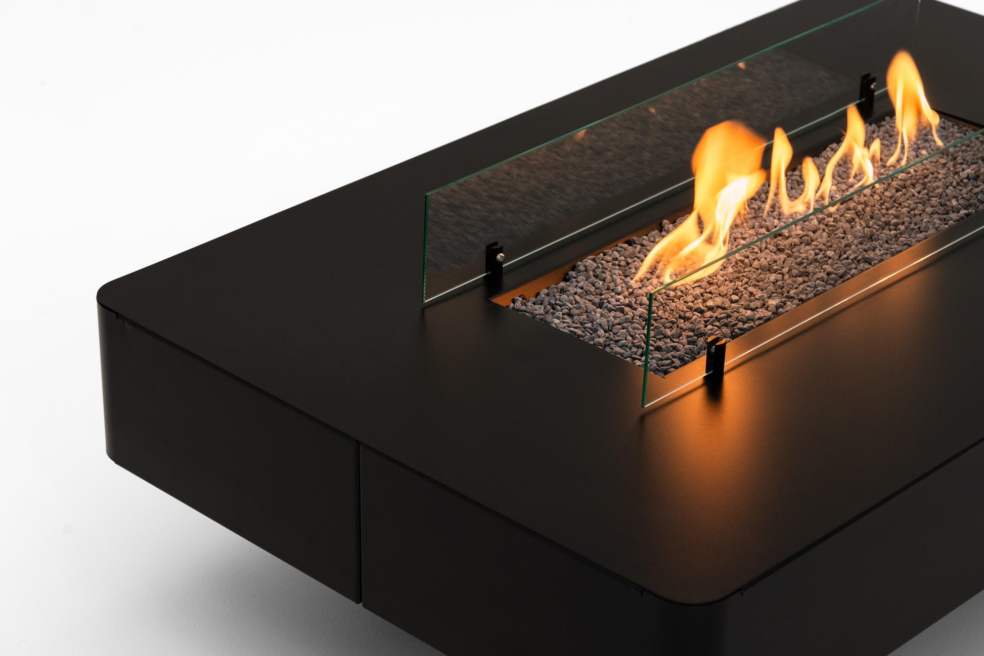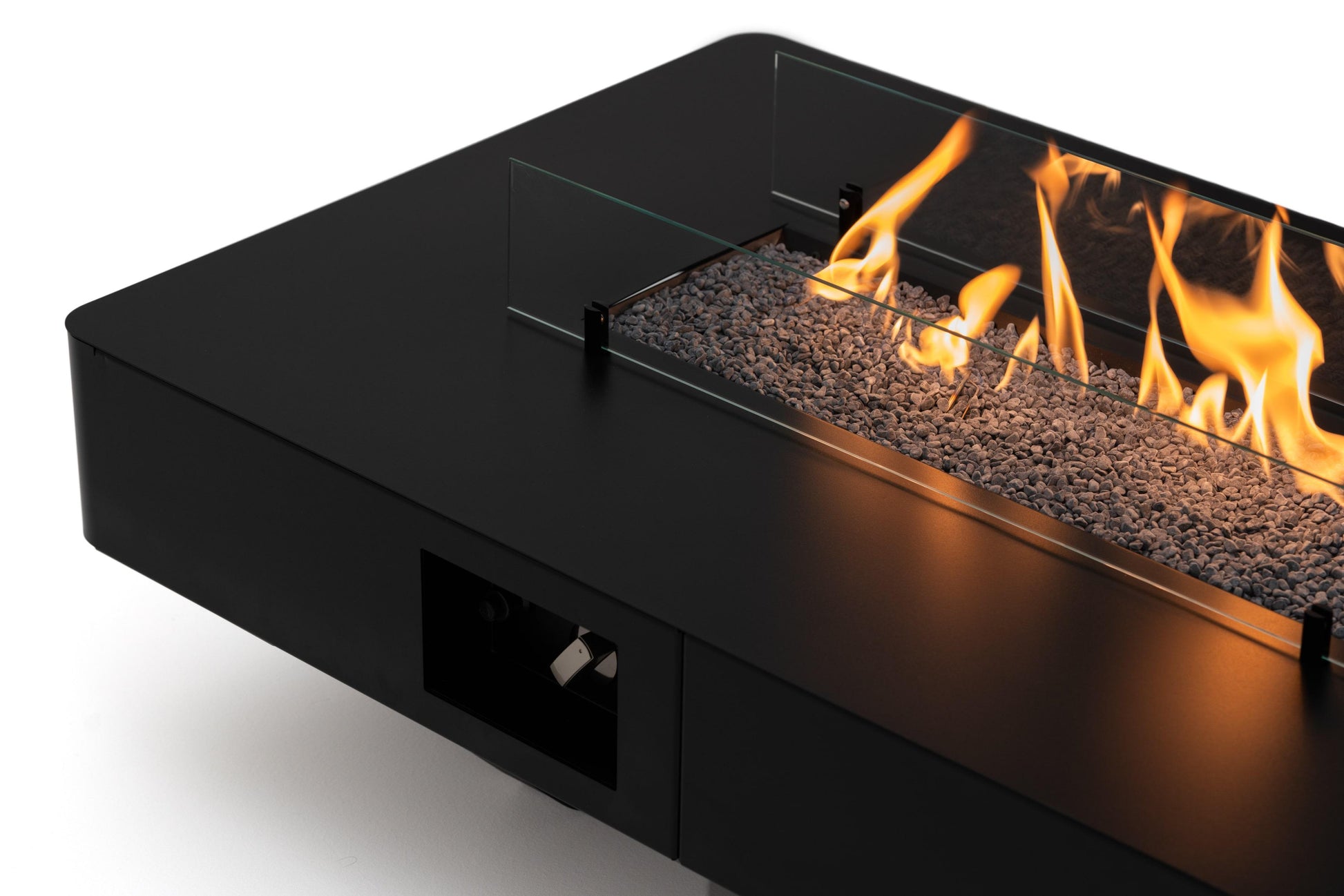 Esta mesa cuenta con una chimenea empotrada alimentada por gas de bombona que ofrece una experiencia de combustión limpia y sin complicaciones sin necesidad de leña ni leña. La perilla de control permite un fácil ajuste de la llama lo que permite personalizar la calidez y el ambiente para cualquier reunión al aire libre.