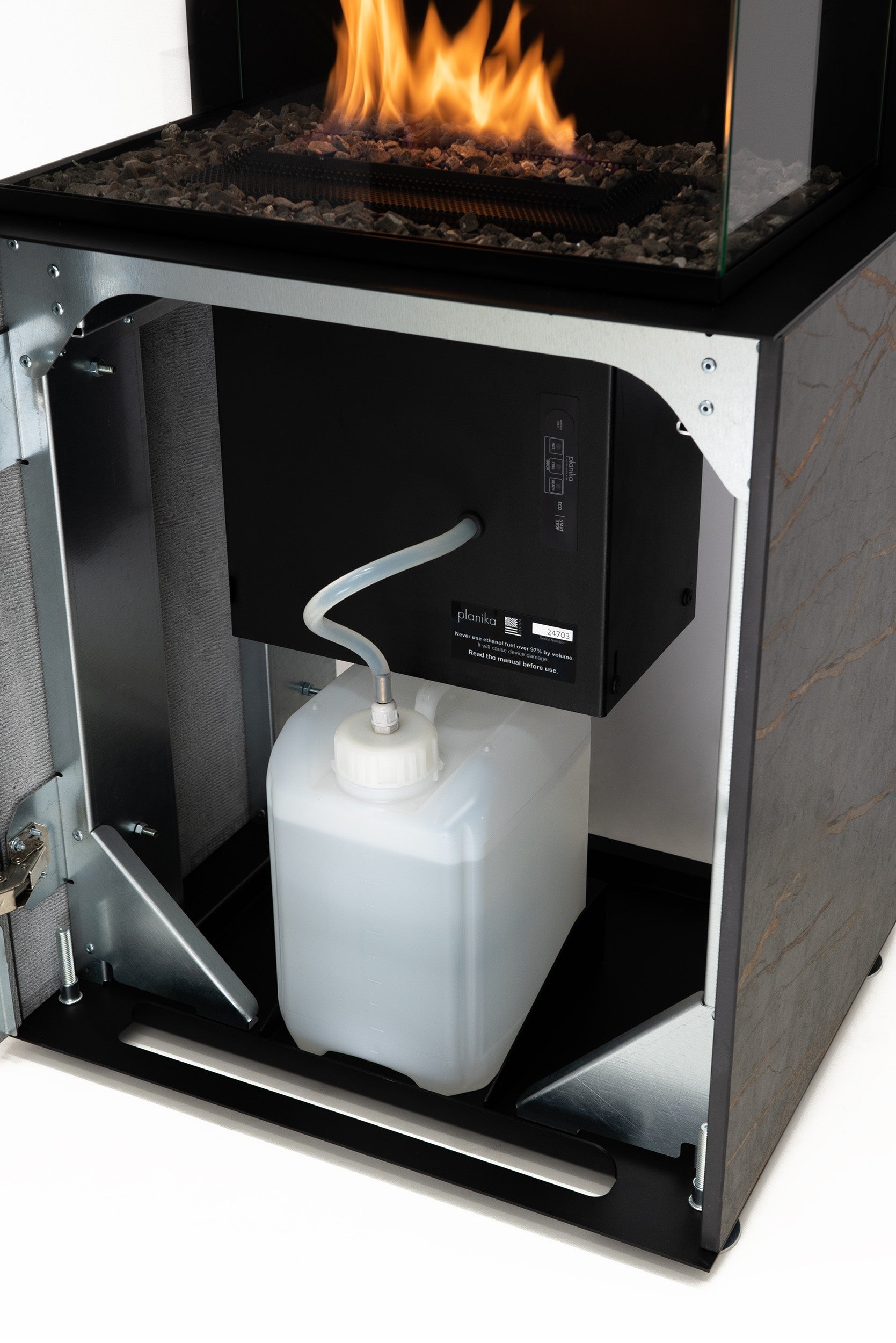 Los quemadores de bioetanol de Planika son los más inteligentes y lujosos disponibles en el mercado. Impulsado por el estado de la tecnología más avanzada que combina la elegante belleza de una chimenea tradicional con el nuevo enfoque de la innovación moderna. Su peculiar funcionamiento, mediante " gasificación del combustible", nos ofrece un consumo de combustible mínimo, y la seguridad adicional de que la línea de fuego no está en contacto directo con el bioetanol (solo consume el gas emitido).