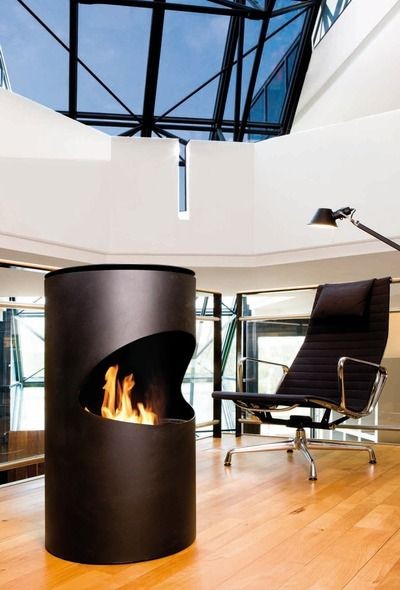 Estufa de Bioetanol para suelo con original forma cilíndrica.