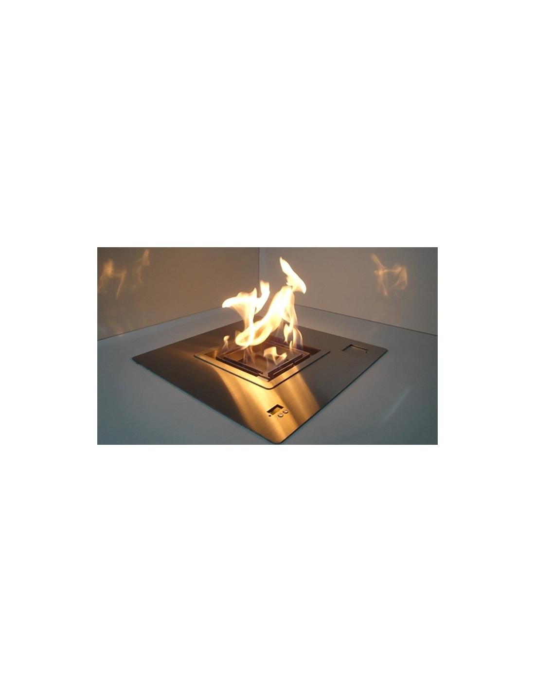 Quemador de Bioetanol redondo elaborado en acero inox cepillado, equipado con control remoto y con un depósito de 12 litros de capacidad. Modelo cuadrado.
