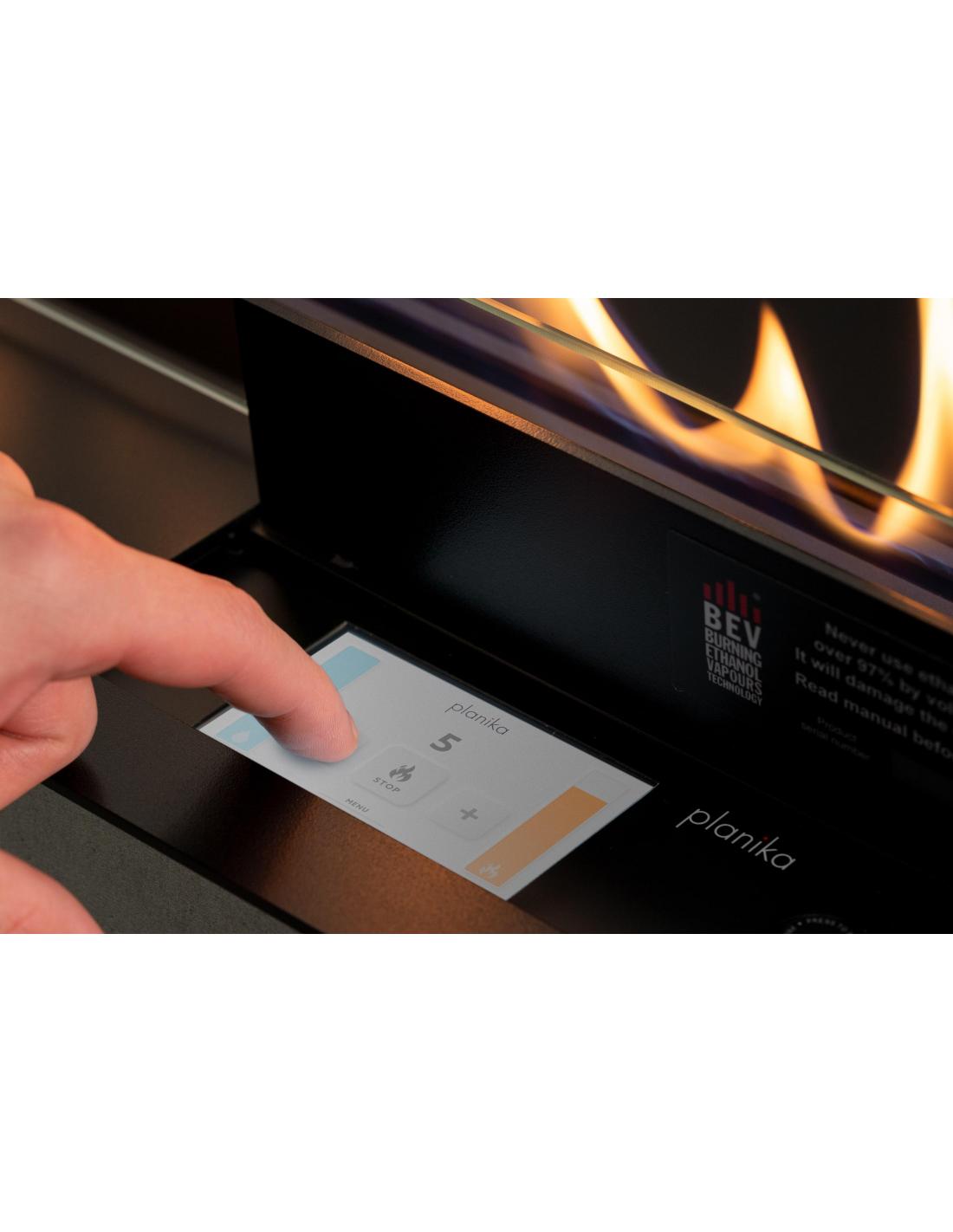 El FLA 4 1490 PLANIKA Acristalado es un quemador de bioetanol exclusivo y automático, fabricado en acero galvanizado con un largo de 149 cm. Ofrece 6 niveles de llama y se controla mediante un dispositivo móvil, además de ser compatible con sistemas domóticos.