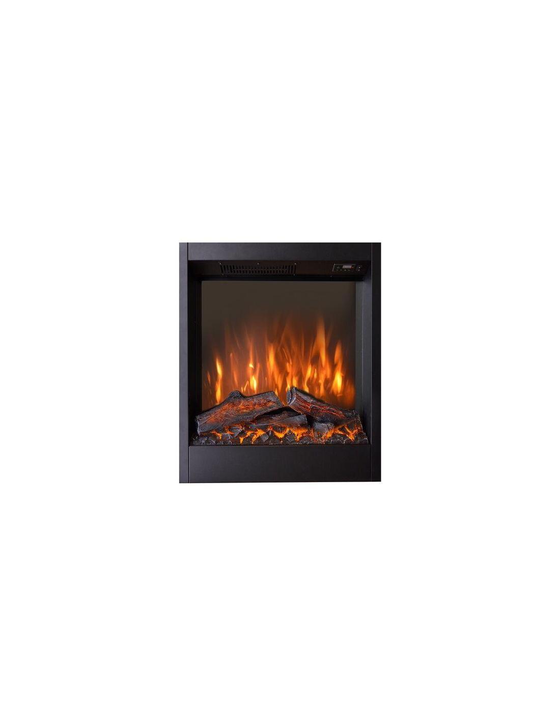 La chimenea electrica de suelo Kos Xaralyn combina revestimiento decorativo en piedra o madera y quemador electrico a elegir